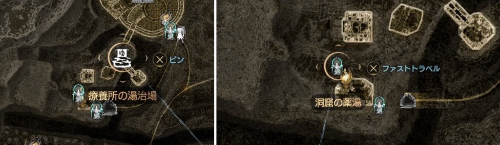 全部で6か所、マップに温泉マークが移らない箇所も対象になっていて、とりこぼしがちなのはホリーと一緒に行った「渓谷の洞窟」の奥にある「洞窟の薬湯」だと思います。