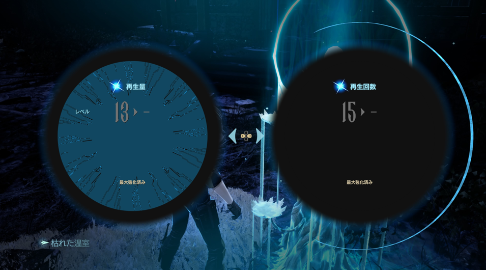 再生力を最大まで強化がトロフィー獲得条件で以下の画像の通り再生力、回数どちらも最大にする必要があると思います。再生回数だけではトロフィー獲得になりませんでした。